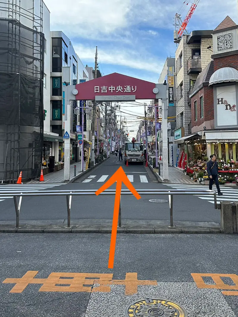 2. 日吉駅西口を出たら、日吉中央通りへ進みます。