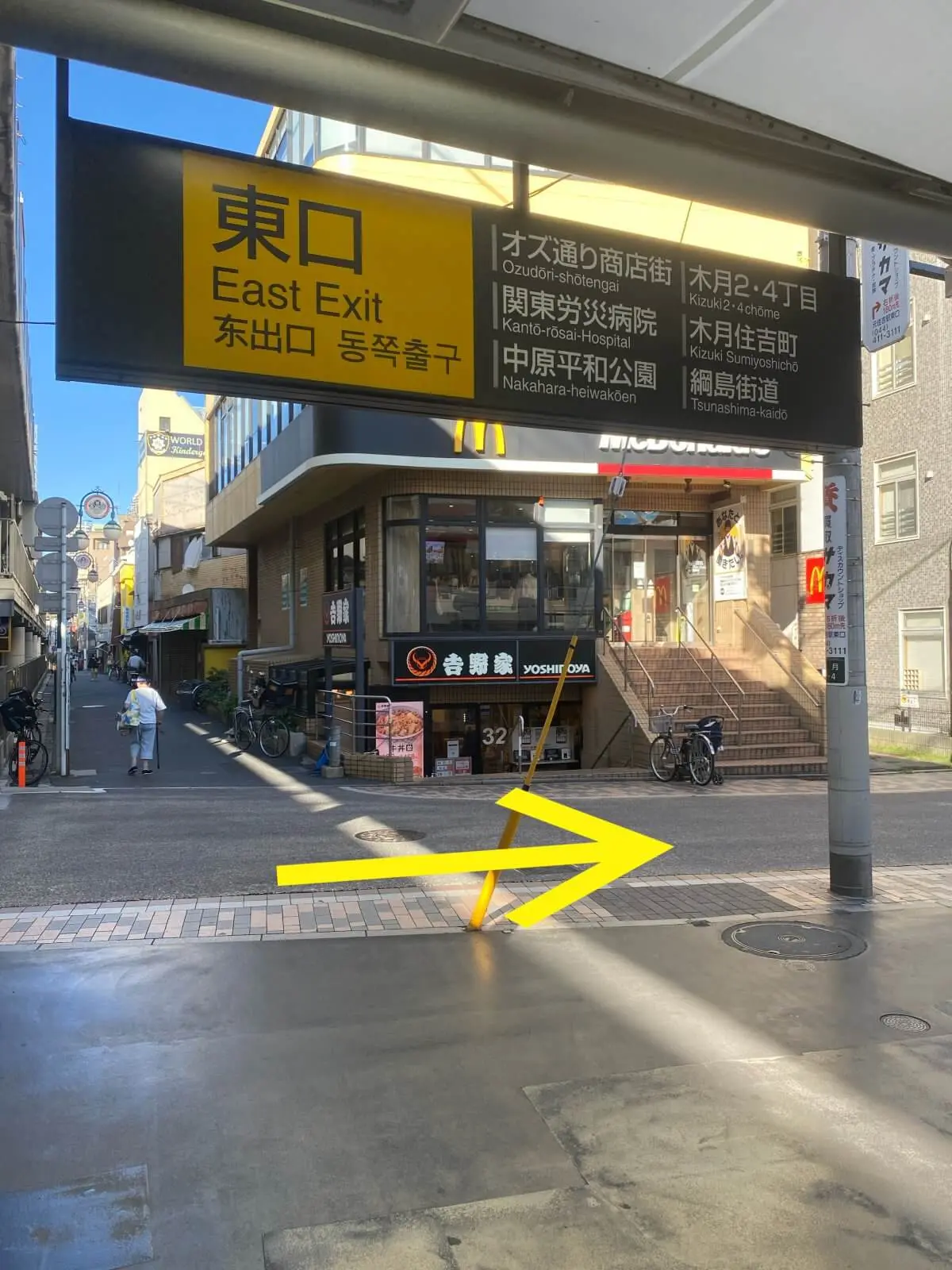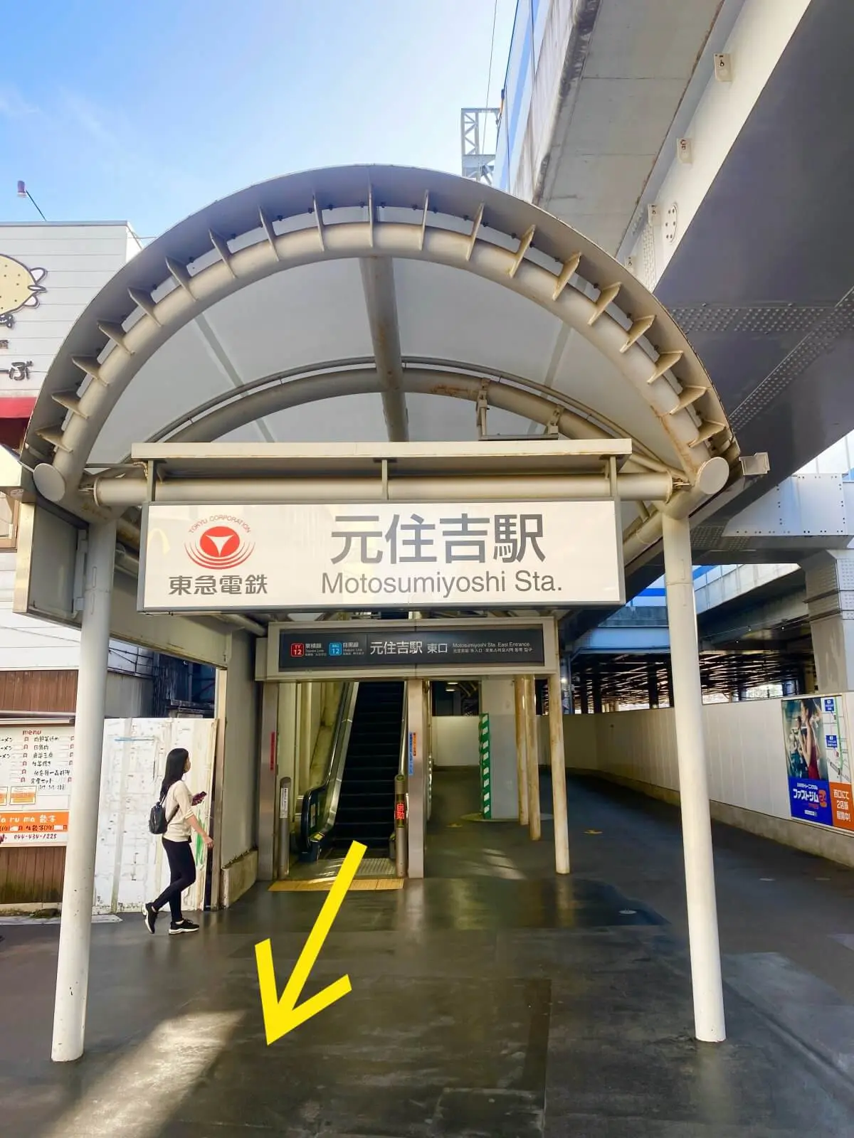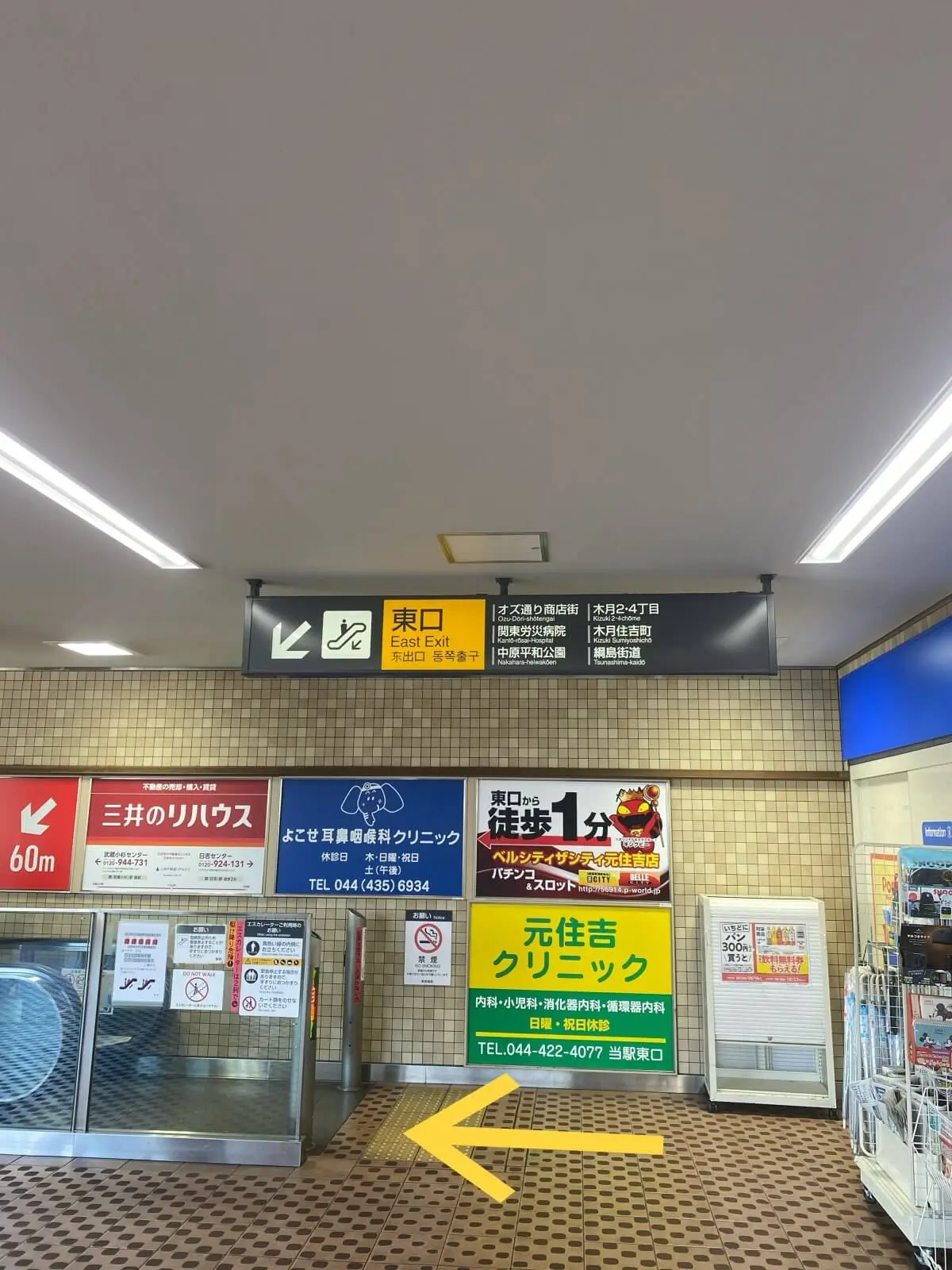 2.エスカレーターを降り、元住吉駅東口へ。