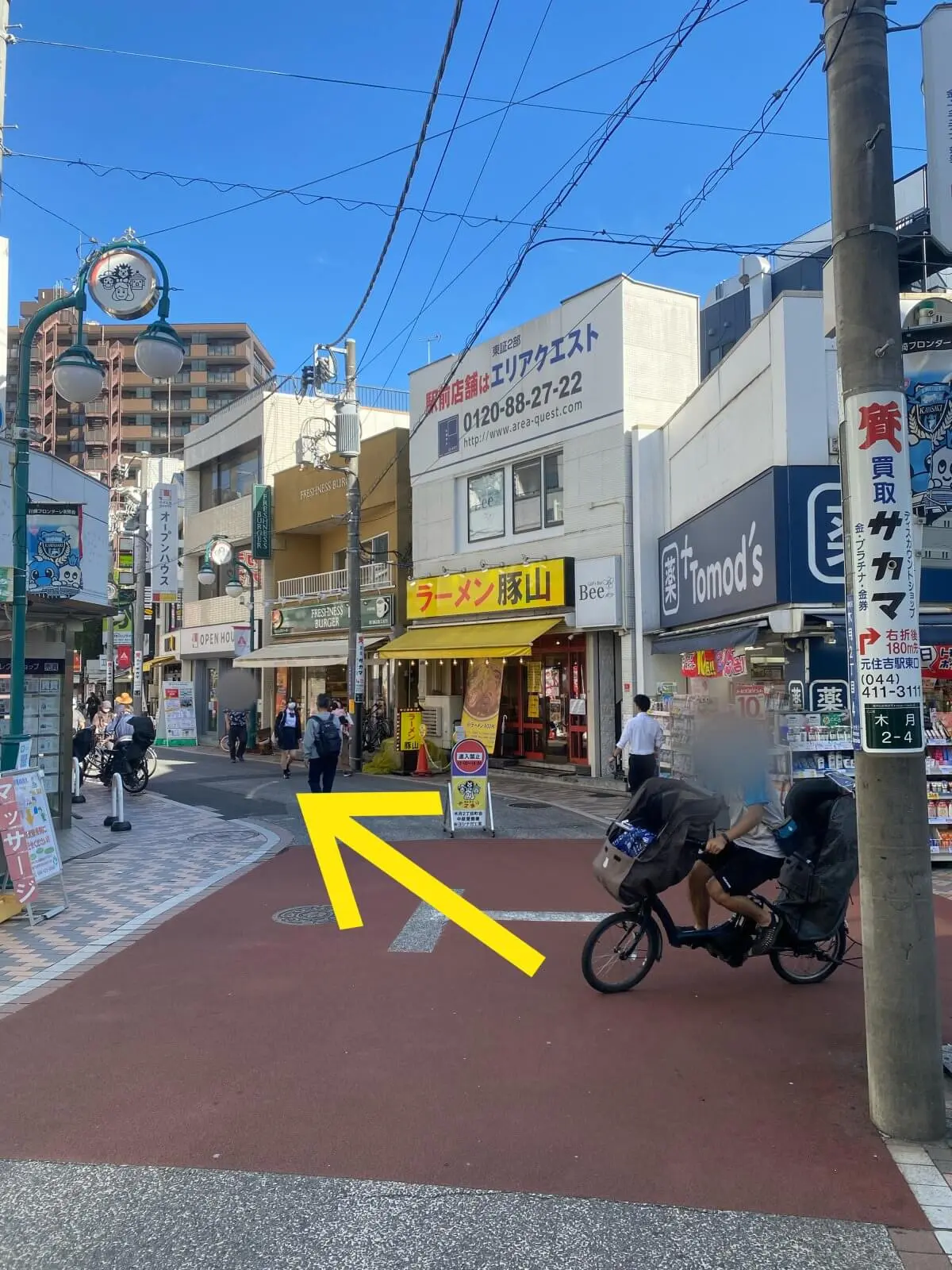 4.元住吉駅東口を出たら右へ曲がり直進。