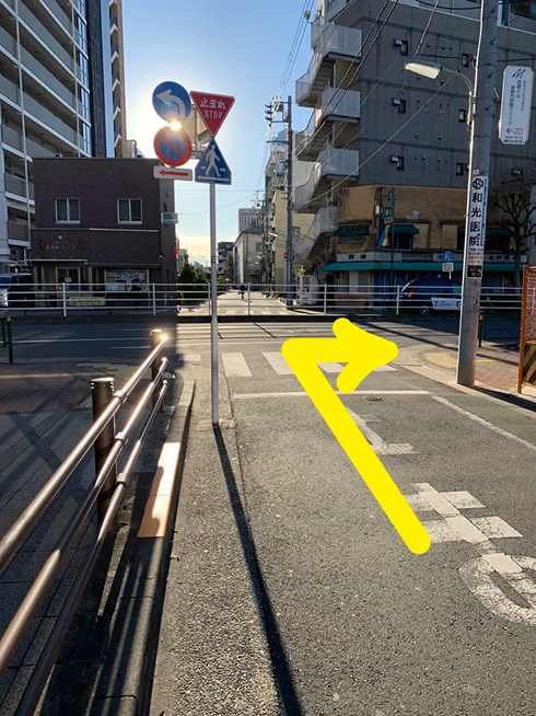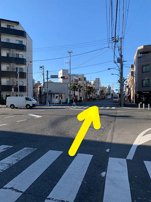 そのまま直進して交番のある十字路を右へ
