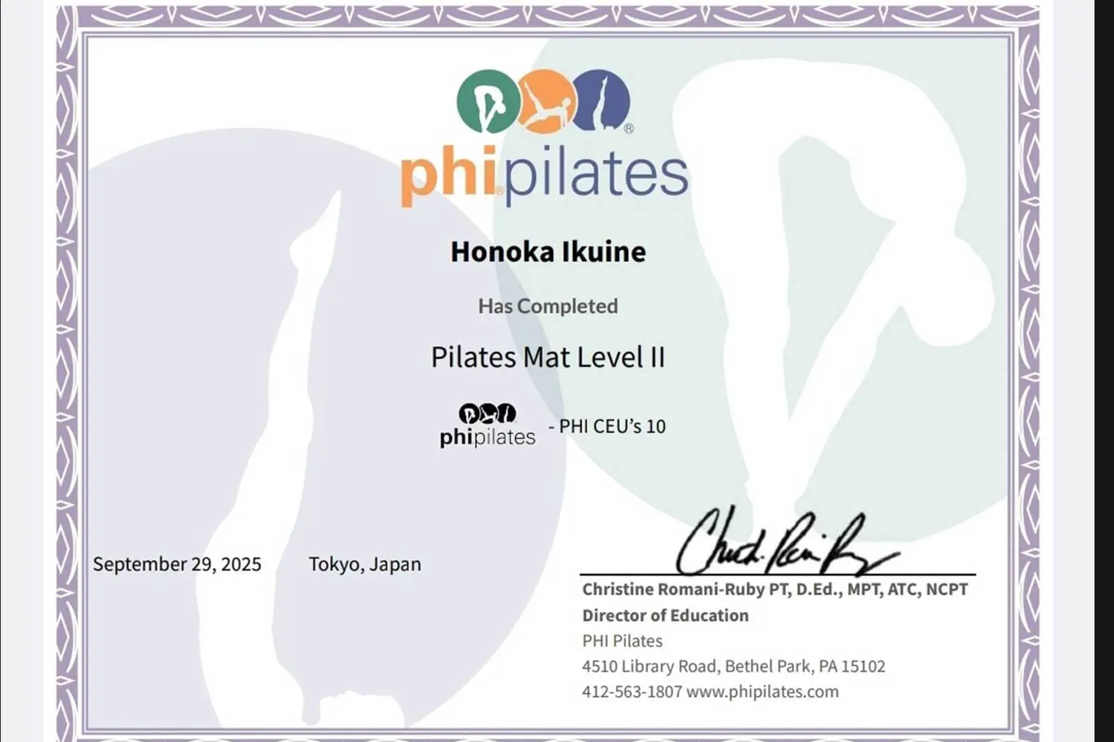大山店の担当トレーナーはピラティスの老舗団体PHIの資格を保持しており、