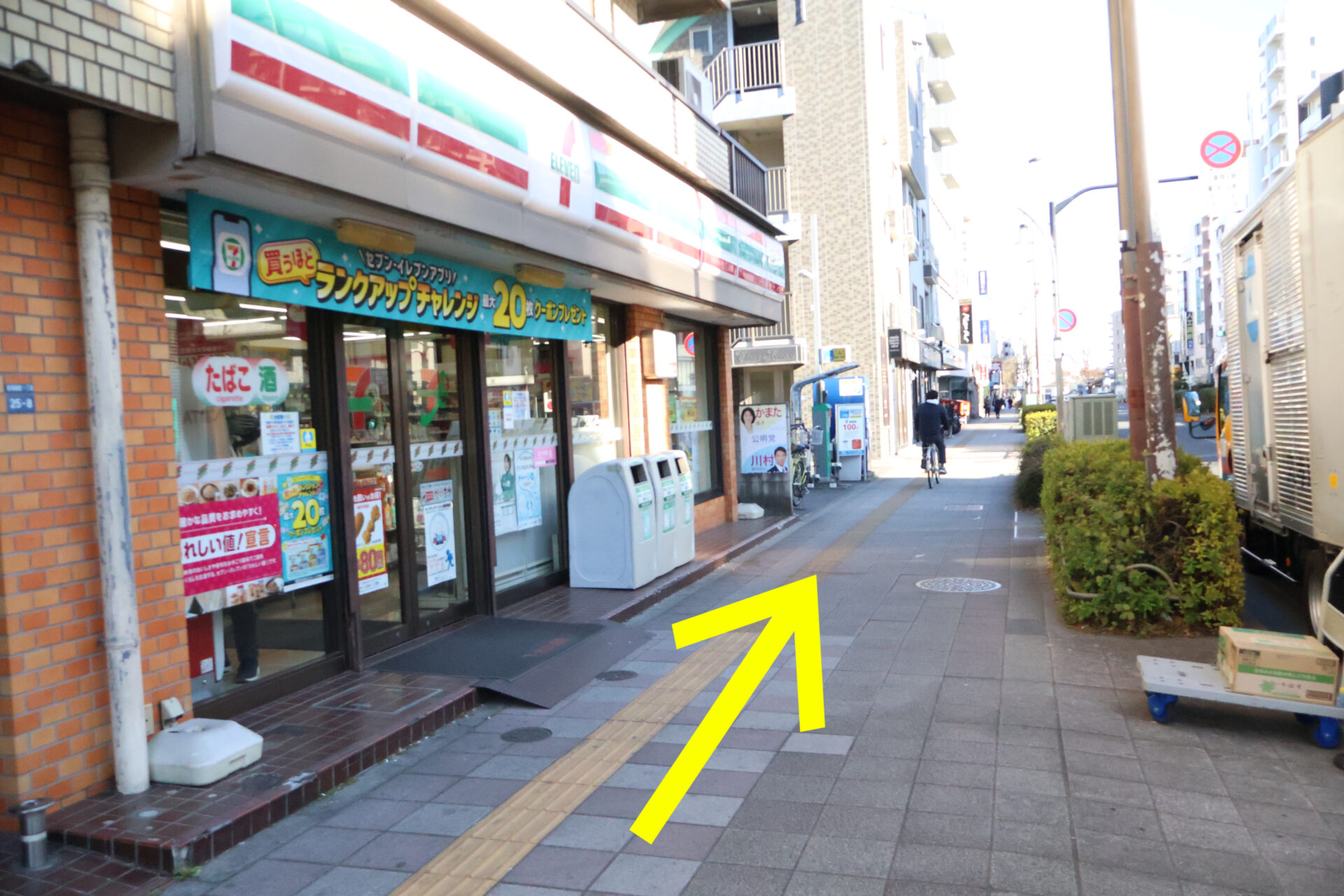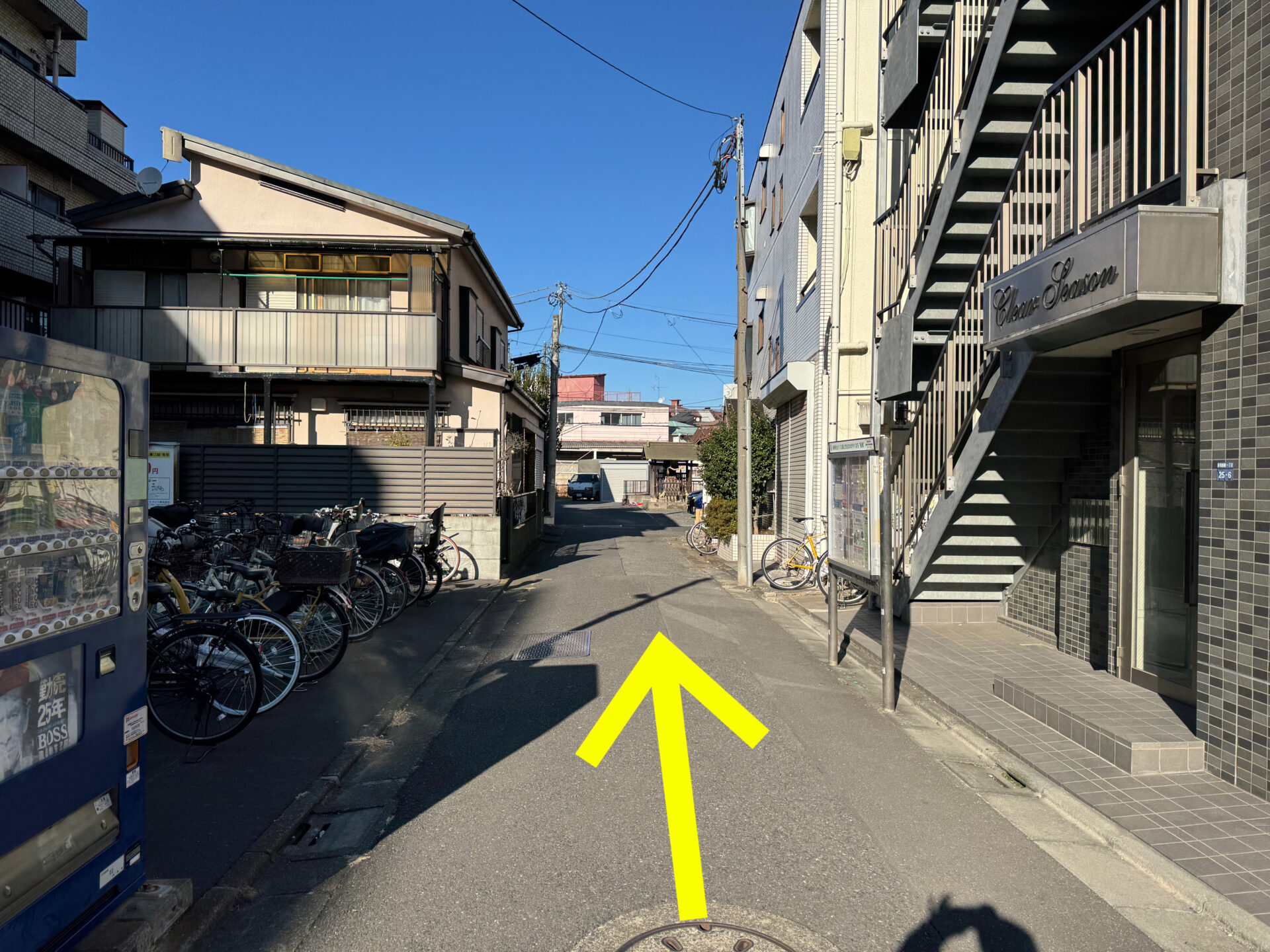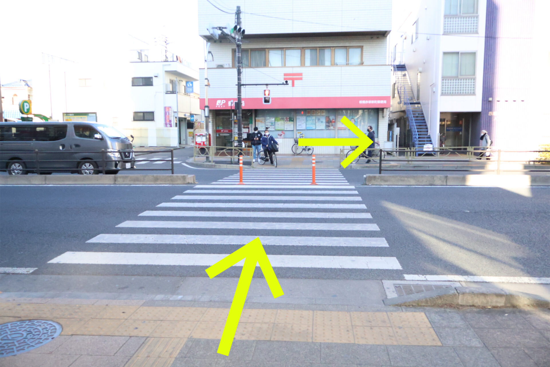 2. 正面の横断歩道をそのまま郵便局に向い直進し右に曲がります