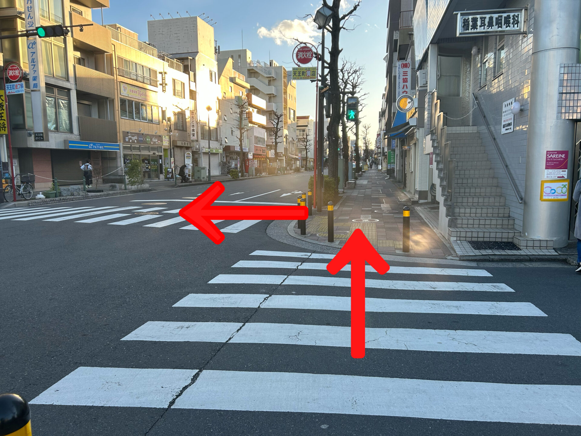 3.横断歩道を直進します。
