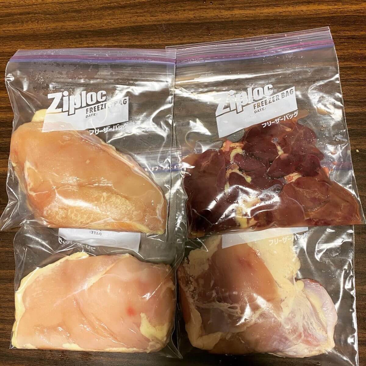とにかくスーパーで買ってきた肉や魚などの食材をジップロックに突っ込んで入れるだけです。