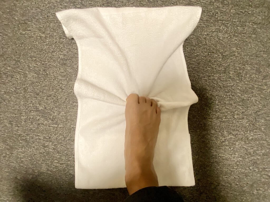 ①タオルの上に足を乗せます