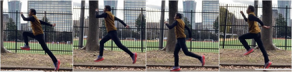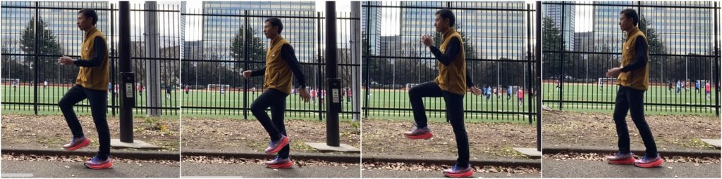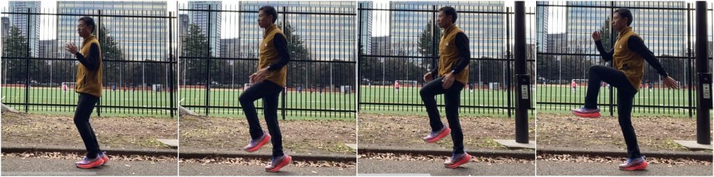 ・もも”上げ”ですが、強く踏み込んだ反発で勝手に足が上がるイメージです