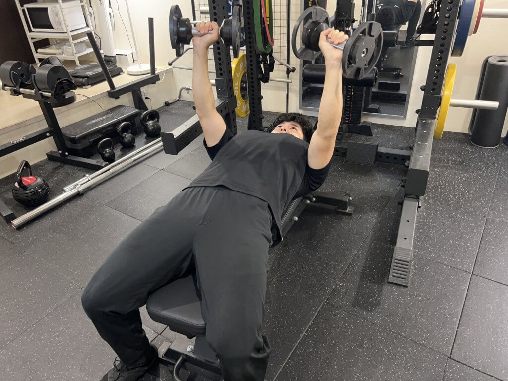 - 8kgのダンベルが軽く感じたら10kgに変える