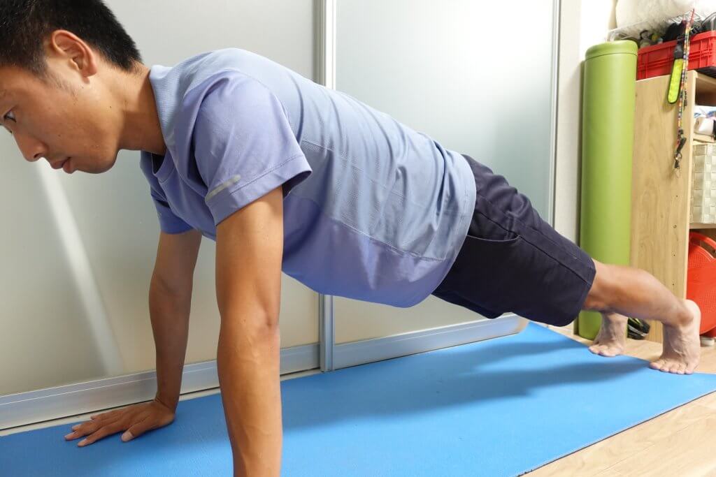②①の状態でプッシュアップを行います