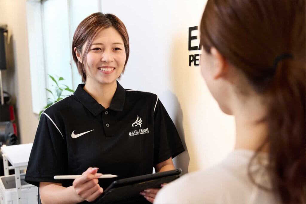 現在は、より一人ひとりに寄り添った指導を提供するためEAGLE BASEへ入社し、「無理なく続けられるボディメイク」を大切にお客様のサポートを行っています。