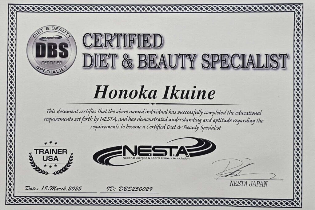 - NESTA-PFT(全米エクササイズ&スポーツトレーナー協会認定