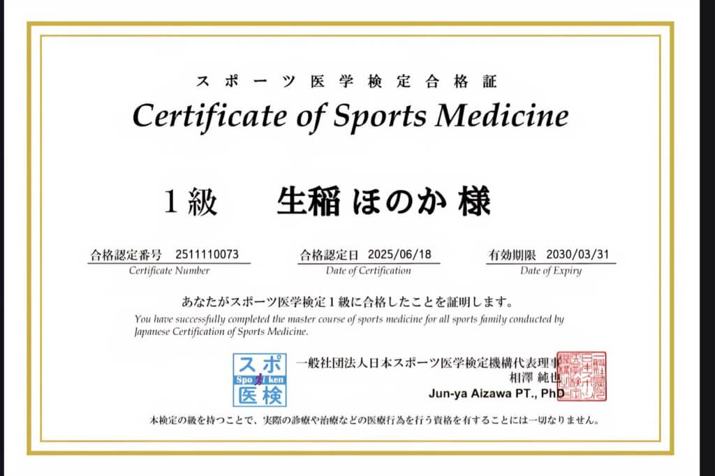 - NSCA-CSCS(全米ストレングス&コンディショニング協会 認定ストレングス&コンディショニングスペシャリスト)